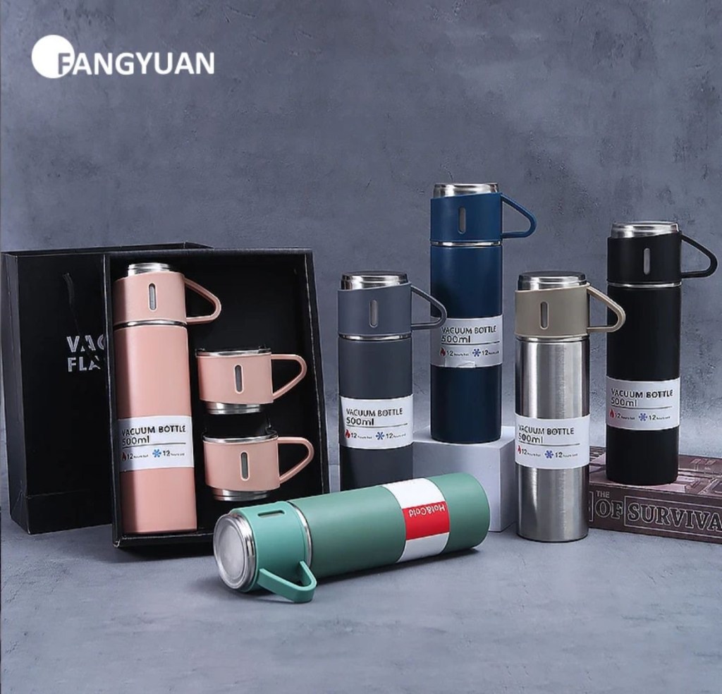 Ensemble de Flasque en Acier Inoxydable avec 3 Couvercles